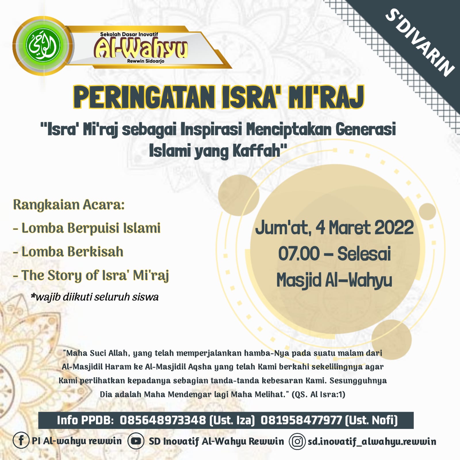 Menggelar peringatan Isra Mi’raj 1443 Hijriah tahun 2022 adalah wujud dari semangat kita selaku umat muslim agar lebih semangat meraih takwa. Meningkatkan ukhuwah islamiyyah antar sesama siswa, guru, dan...